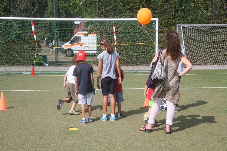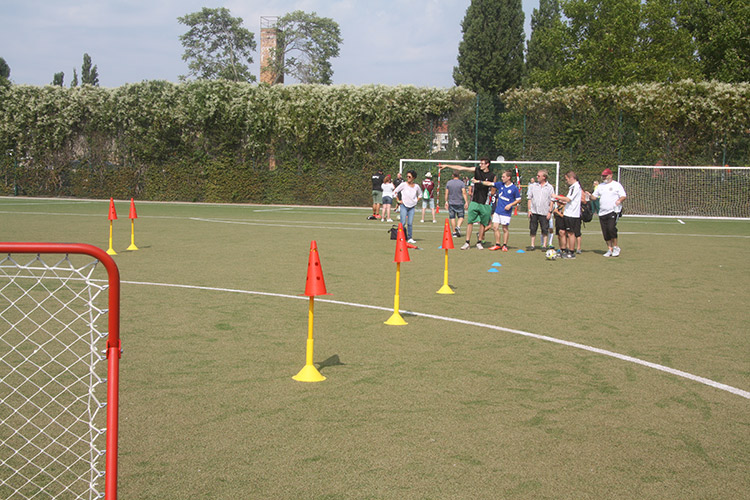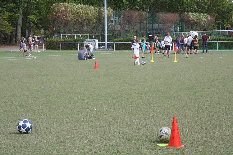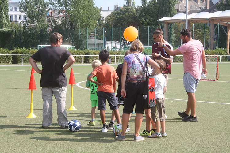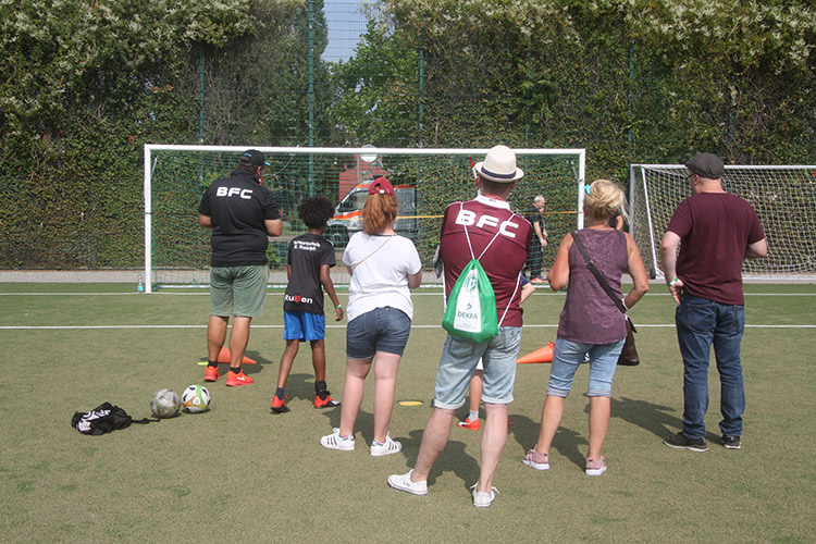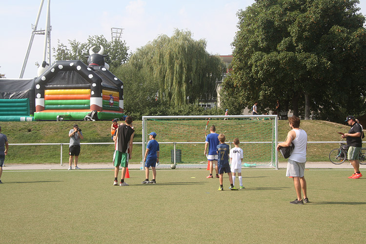 Zusammen mit den Fußballern vom BFC Dynamo könnt ihr das DFB-Fußballabzeichen machen. Dafür müsst ihr euch an 5 spannenden Stationen beweisen und zeigen, was ihr mit dem Ball drauf habt: dribbelt superschnell um verschiedene Hindernisse, schießt akkurate Pässe und zeigt, dass ihr der Kopfballkönig seid.