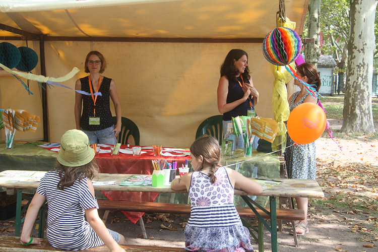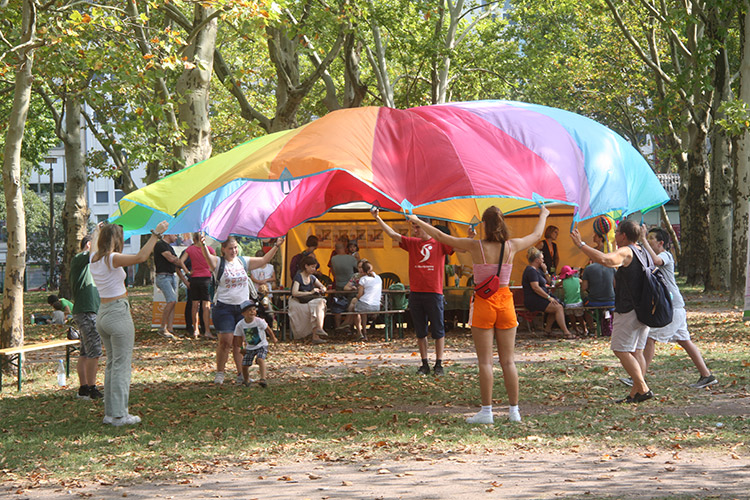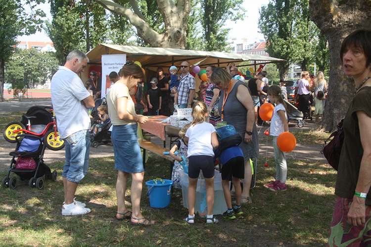An den Ständen der einzelnen Pflegekinderdienste gibt es viele Attraktionen mit großem Bastel-, Spiel- und Sportprogramm zum Mitmachen und Spaß