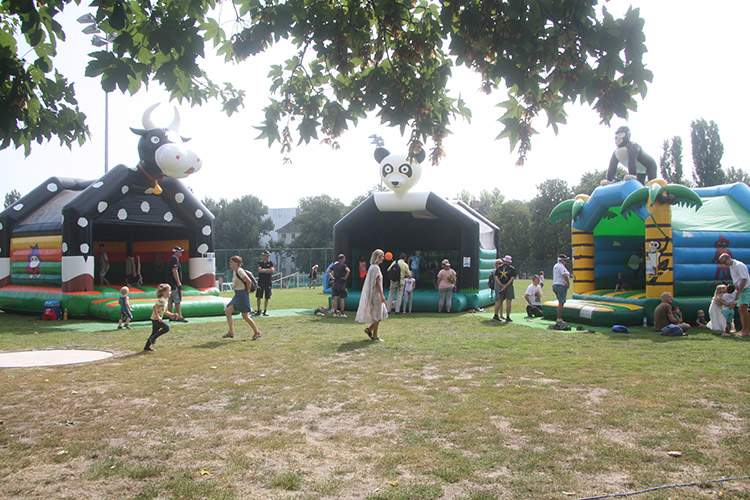Sonst eher ungewöhnlich für einen Sportpark, gibt es hier riesige Hüpfburgen für euch zum Toben und Klettern. Dann heißt es: nicht nur gucken, sondern mitmachen und Spaß haben!